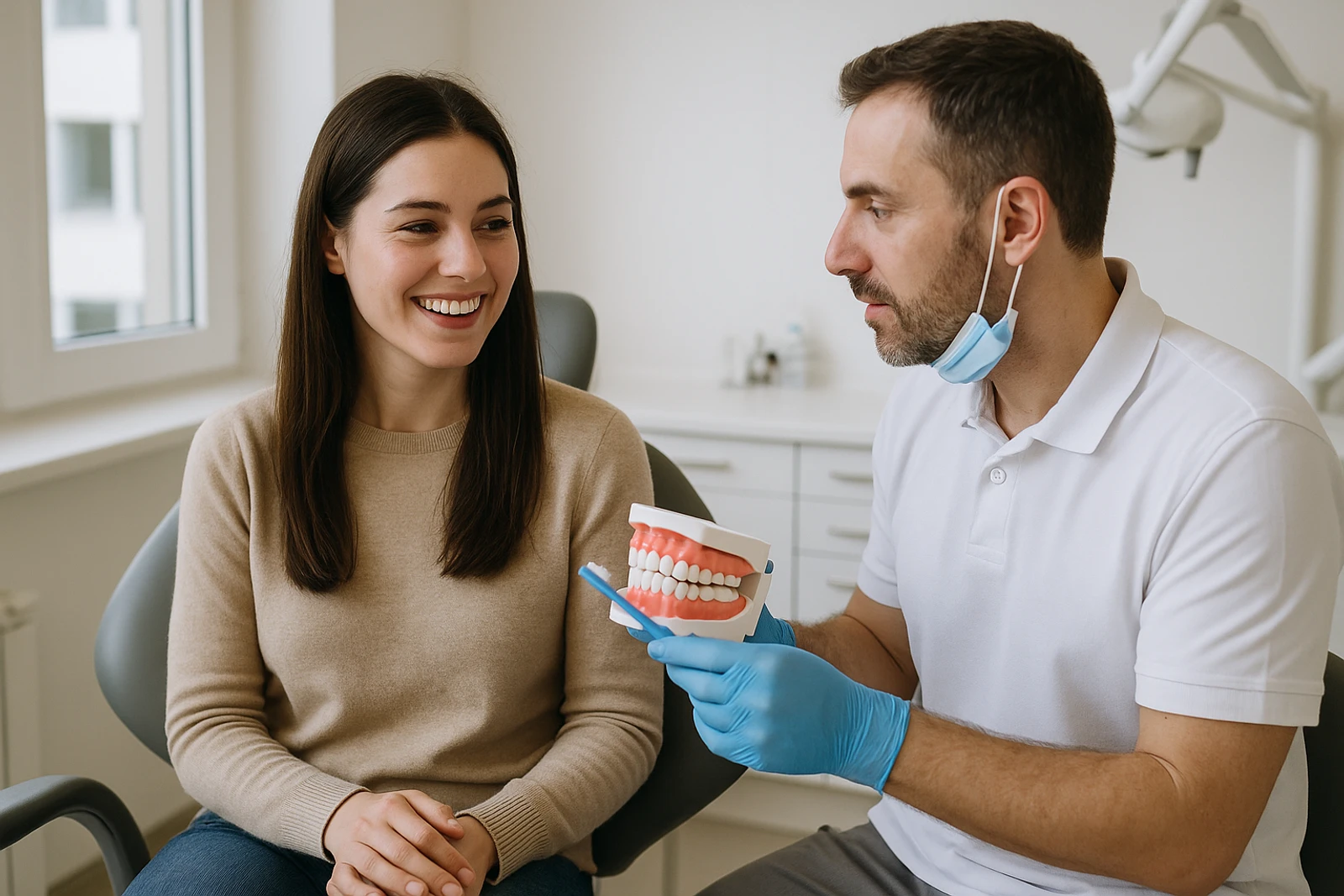 Instrucciones personalizadas de higiene: técnica, tipo de cepillo, interdentales adecuados y rutina realista.